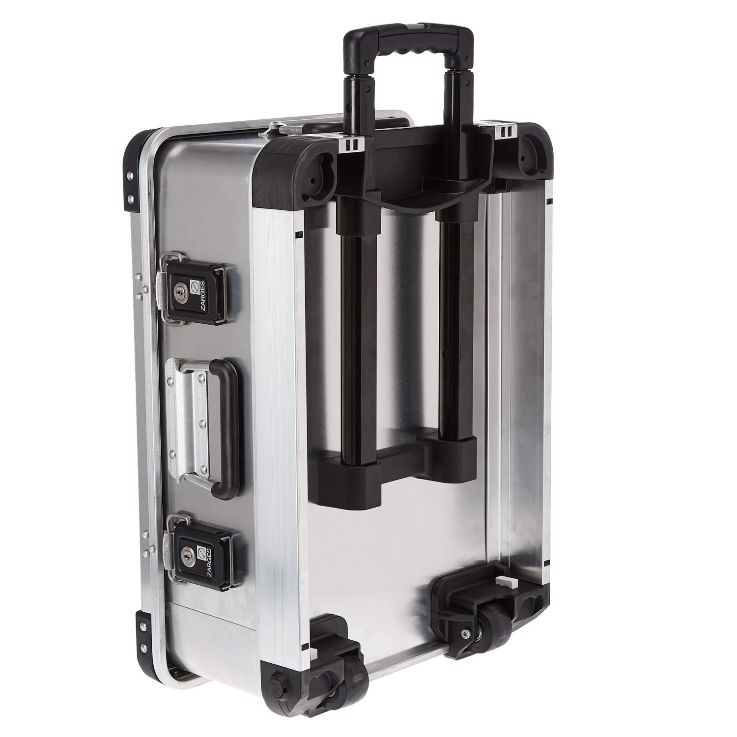 Wenn du eine längere Strecke zurücklegen musst oder der Inhalt schwer ist, zeigt die Alu-Ausrüstungsbox ihre Qualitäten. Dank des herausziehbaren Griffs und der Spezialrollen mit hoher Laufruhe lässt sie sich einfach ziehen. Zum Hochheben oder für kleine Strecken hat die Box seitliche Tragegriffe.